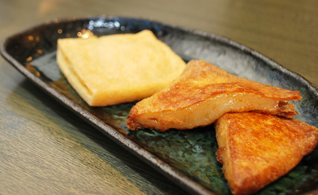 「豊川いなりうどん」の最大の特徴の「いなり餅」。 お餅の入った油揚げを、油で揚げてさらにそれを焼き、秘密の味付けで作る「いなり餅」 は、甘辛く独特の食感です。 職人さん達が手間隙をかけ、改良を重ね考案した「いなり餅」をご堪能ください。 一度食べたらあなたもやみつきになる事間違いナシ!!