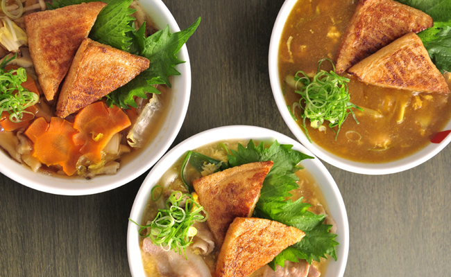 職人さんが考えたみなさんを飽きさせない為の工夫の一つ。「豊川いなりうどん」の味は何と3種類!!